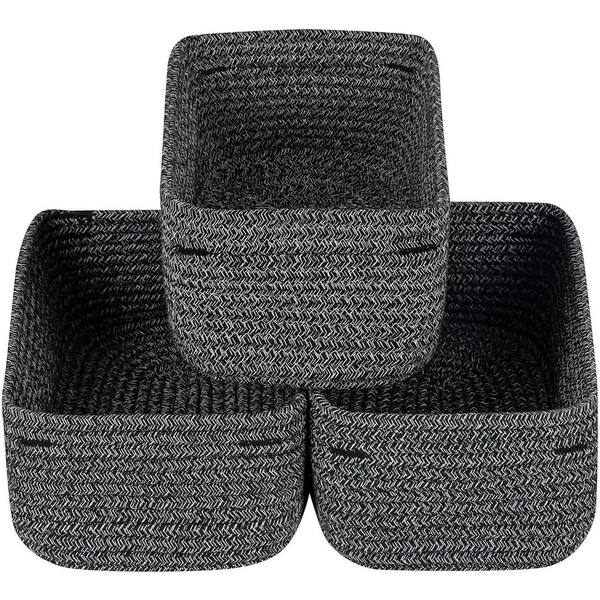 Black 12 in. x 5 in. Cotton Decorative Basket (Set of 3) With Built-in Handles