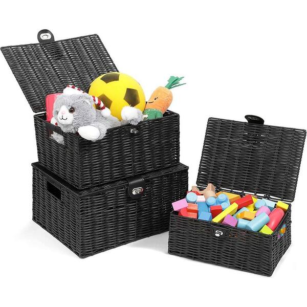 Black 14.2 in. x 7.3 in. Polypropylene Decorative Basket Set of 3 with Lid