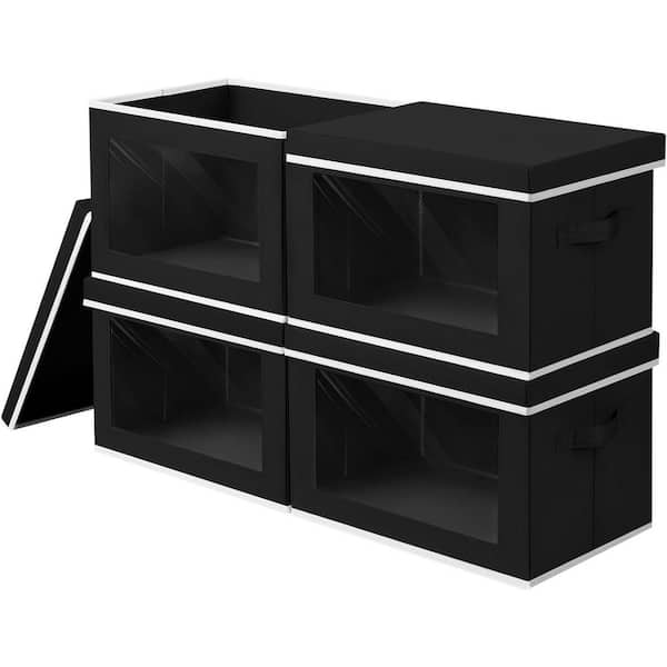 Black 15.7 in. x 12 in. Fabric Decorative Basket Set of 4 with Handles and Lid