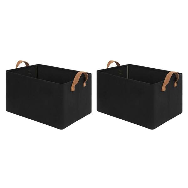 Black 16.5 in. x 10.3 in. Fabric Decorative Basket Set of 2 with Handles