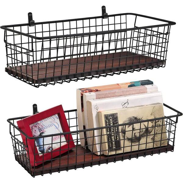 Black 16.5 in. x 3.5 in. Metal Decorative Basket Set of 2 with Handles