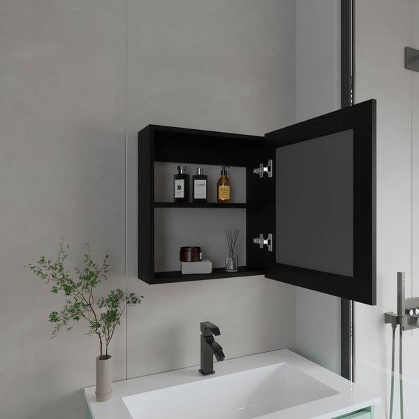 Black 18.6 in W x 20.5 in. H Modern Rectangle Particle Board Framed Mirror Bathroom Mirror