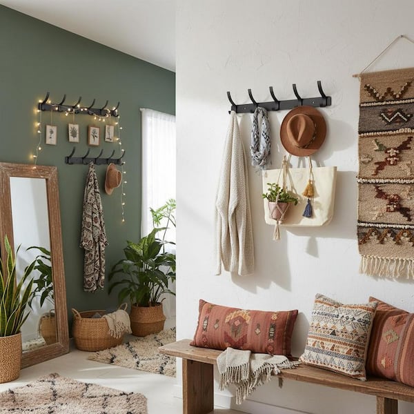Black 2-Pack Metal Coat Rack Wall Mounted