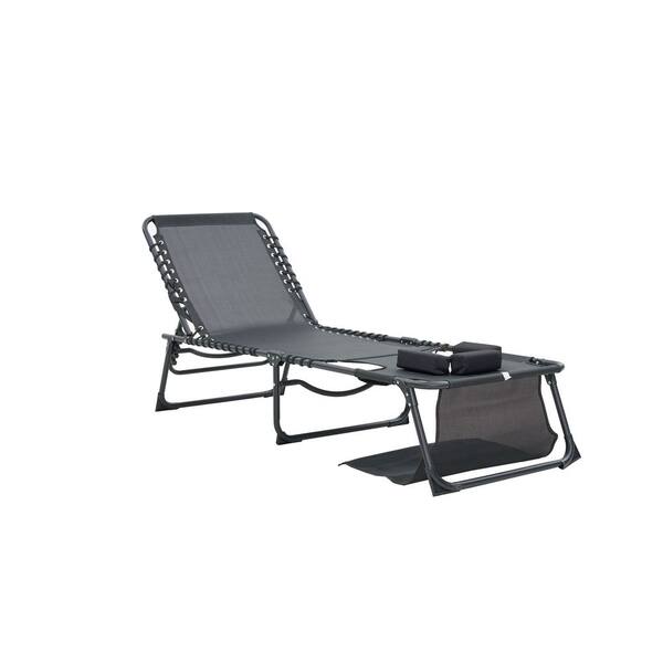 Black 2-Piece Metal Outdoor Foldable Chaise Lounge Chair, 5-Position Adjustable Tanning Chair with Face and Arm Holes
