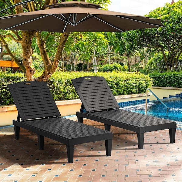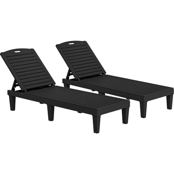 Black 2-Piece Plastic Outdoor Chaise Lounge with 5-Position Backrest