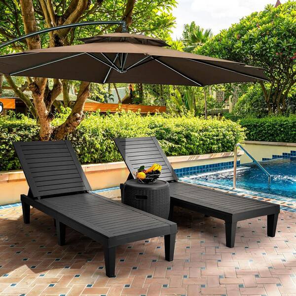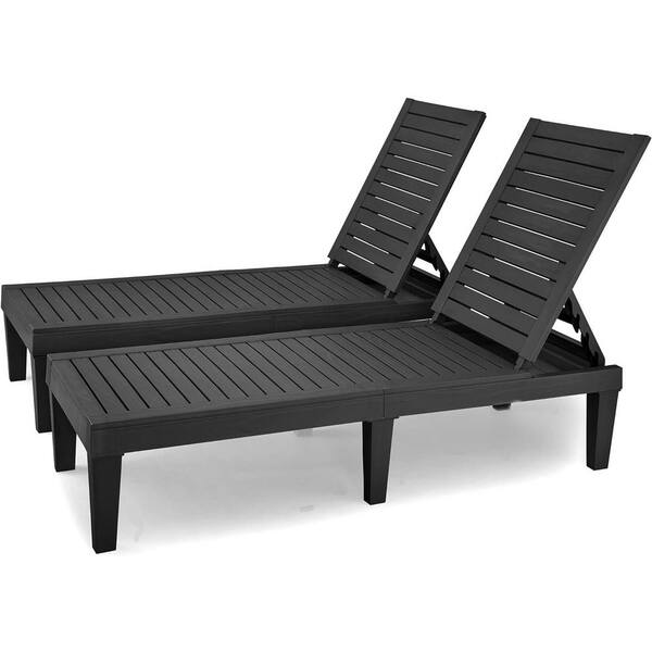 Black 2-Piece Plastic Outdoor Chaise Lounge with Adjustable Backrest