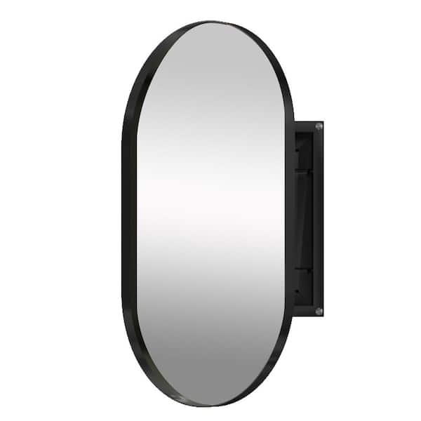 Black 20.5 in. W x 33.5 in. H Oval Metal Medicine Cabinet with Mirror Adjustable Shelves, Wall Mirror with Storage