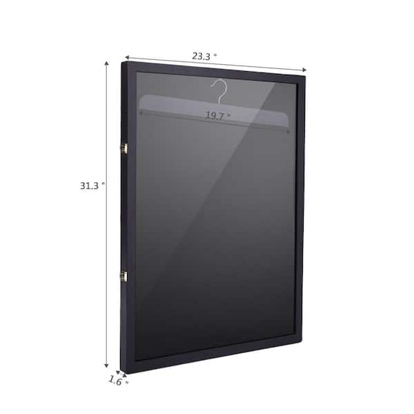 Black 23.3 in. x 31.5 in. Pine Shadow Box, Jersey Frame Display Case with Lengthened Hanger