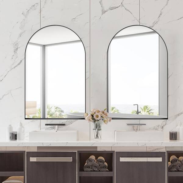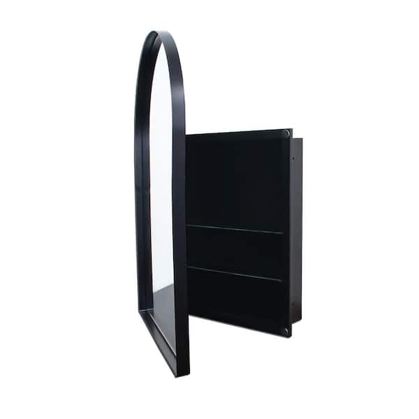 Black 24 in. W x 35.8 in. H Arched Metal Medicine Cabinet with Mirror Adjustable Shelves, Wall Mirror with Storage