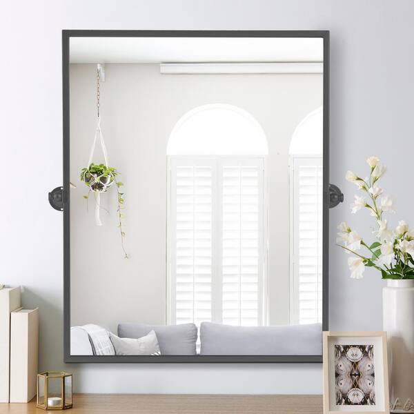 Black 26 in. W x 38 in. H Metal Right-Angled Rectangular Mirror Wall-Mounted for Living Room