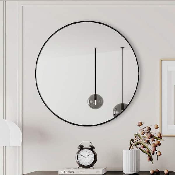 Black 28 in W x 28 in. H Modern Minimalist Round Framed Wall Mirror, Vanity Mirror Makeup Mirror Home Decor Mirror