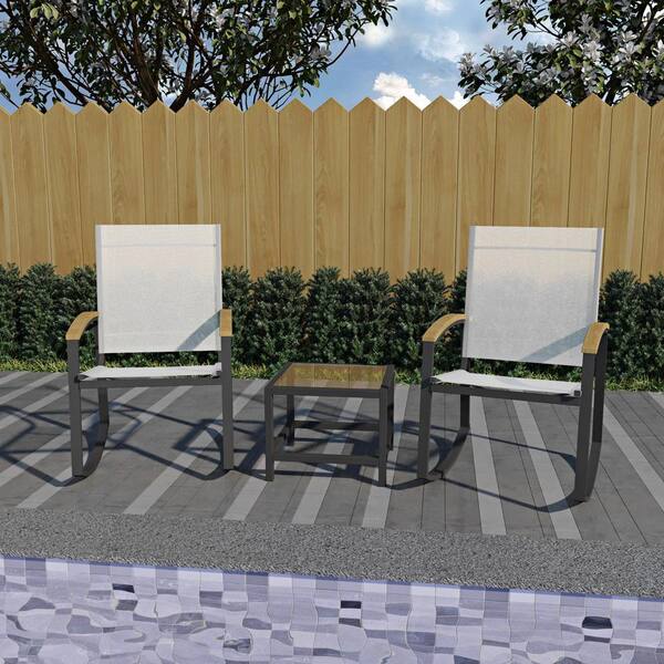 Black 3-Piece Metal Frame Textilene Patio Conversation Set with Glass Table, for Outdoor, Pool, Garden