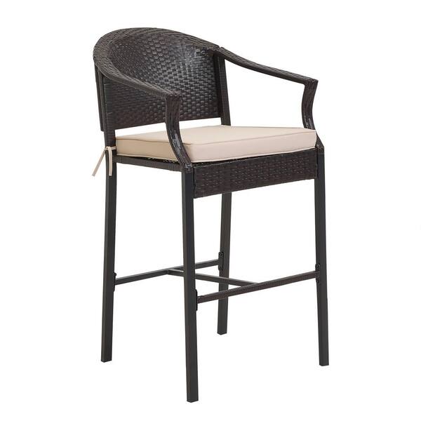 Black 3-Piece Wicker Outdoor Bistro Set with Beige Cushions for Backyard, Poolside, Balcony