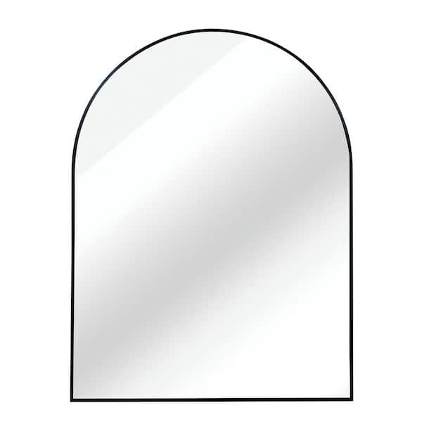 Black 30 in W x 40 in. H Arched Metal Framed Wall Mirror