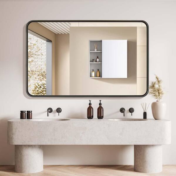 Black 32 in. W x 50 in. H Aluminum Alloy Rounded Corners Rectangular Mirror Wall-Mounted Mirror