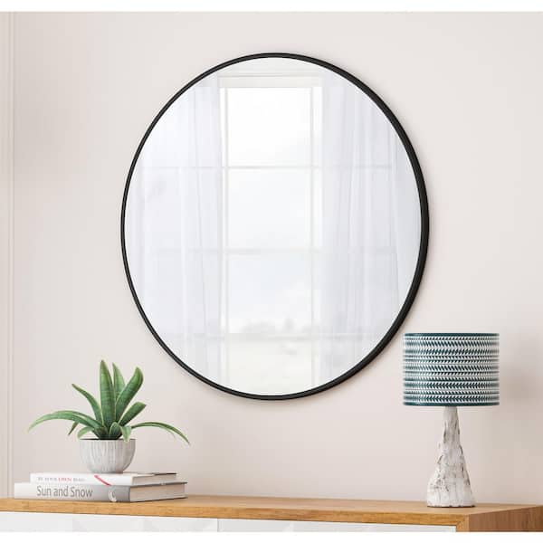 Black 36 in. W x 36 in. H Farmhouse Round Glass Framed Mirror Wall Mirror Bathroom Mirror