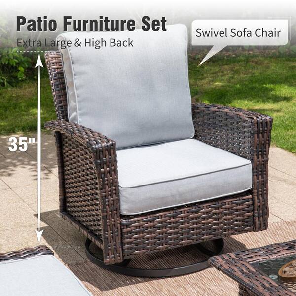 Black 5-Pieces Metal Patio Conversation Sectional Seating Set with Swivel Sofa Chairs, Ottoman and Gray Cushions