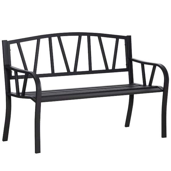 Black 50 in. 2-Person Metal Outdoor Garden Bench Patio Loveseat Chairs Park Bench with Armrests Slatted Seat