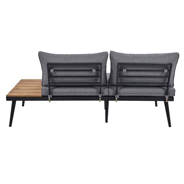 Black 6-Piece Metal Outdoor Sectional Set with Grey Cushions and Round Nesting Coffee Tables