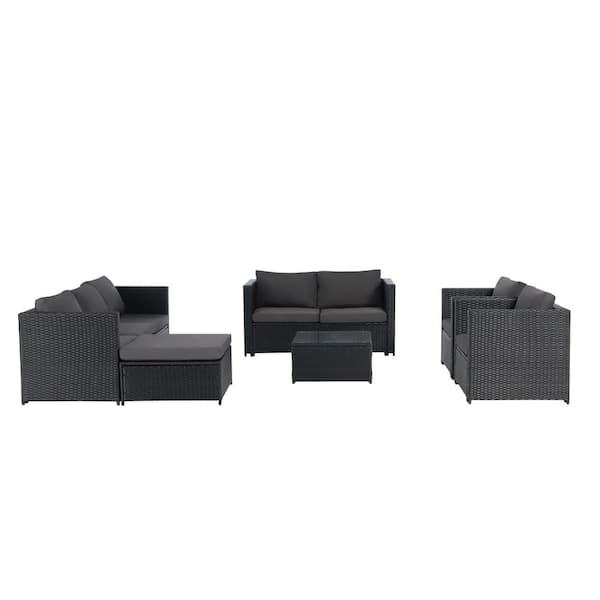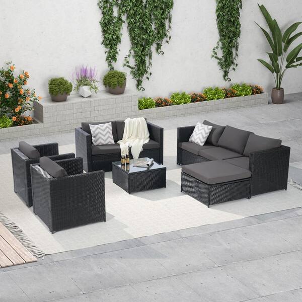Black 6-Piece Wicker Outdoor Sectional Set with Black Cushions