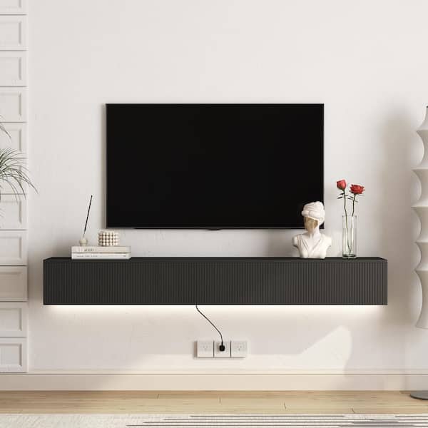 Black 68.8 in. Wood Decorative Stand / Wall Mounted TV Stand with 16-color LED Lights and 4 Kinds of Flashing Effects