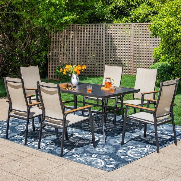 Black 7-Piece Metal Outdoor Patio Dining Set with Rectangle Table and Stackable Aluminum Chairs