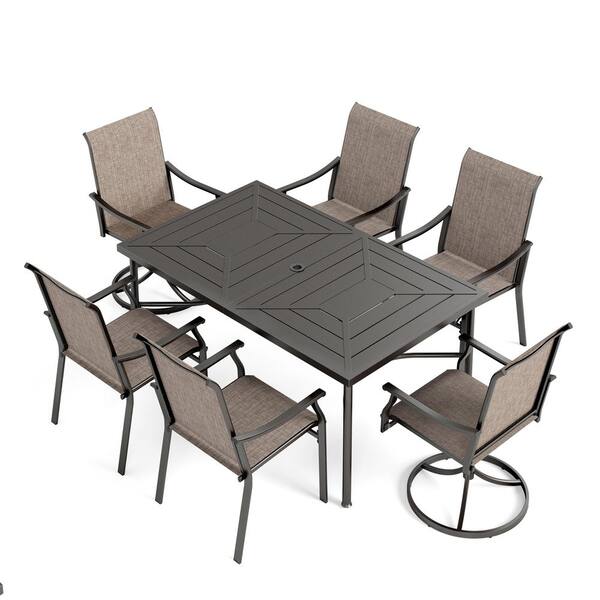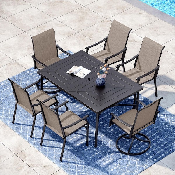 Black 7-Piece Metal Outdoor Patio Dining Set with Straight-Leg Rectangle Table and Textilene Swivel Chairs