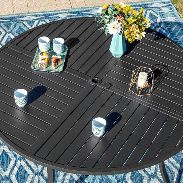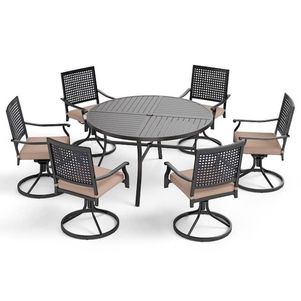 Black 7-Piece Metal Outdoor Patio Dining Set with Swivel Chairs