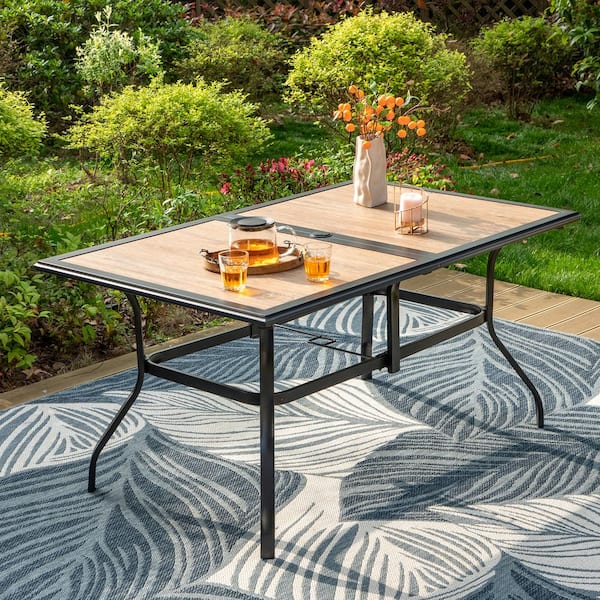 • Wood-look PVC rectangular table top adds a unique aesthetic