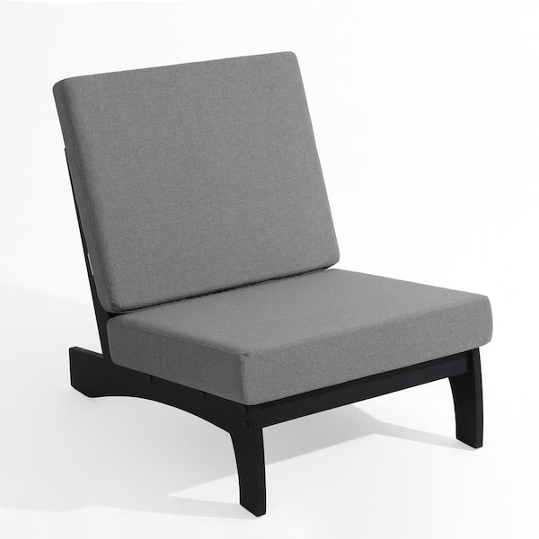 Black Acacia Wood Outdoor Club Chairs Sectional with Gray Cushions (Set of 2)