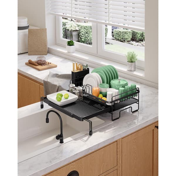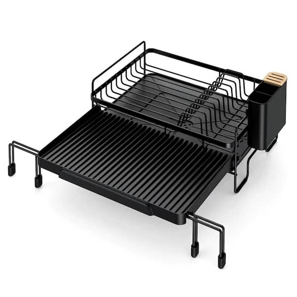 Black Adjustable Over-Sink Dish Rack Rust-Resistant Metal Frame Auto-Draining Kitchen Counter Dish Rack