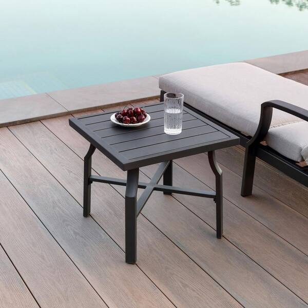Black Aluminum Outdoor Side Table, Pool Lounge Chair Side Table, Weather Resistant Small Square Coffee End Table