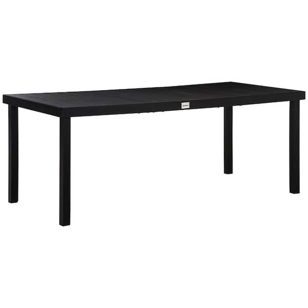 Black Aluminum Rectangular Outdoor Dining Table for 8 People, with All-Weather Faux Wood Top for Garden, Lawn, Patio