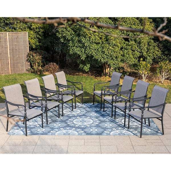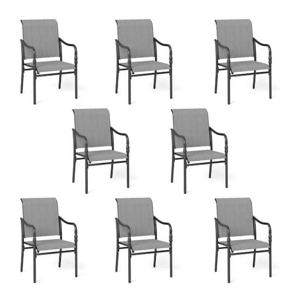 Black Arm Gourd-shaped Design Textilene Patio Dining Chairs (8-Pack)