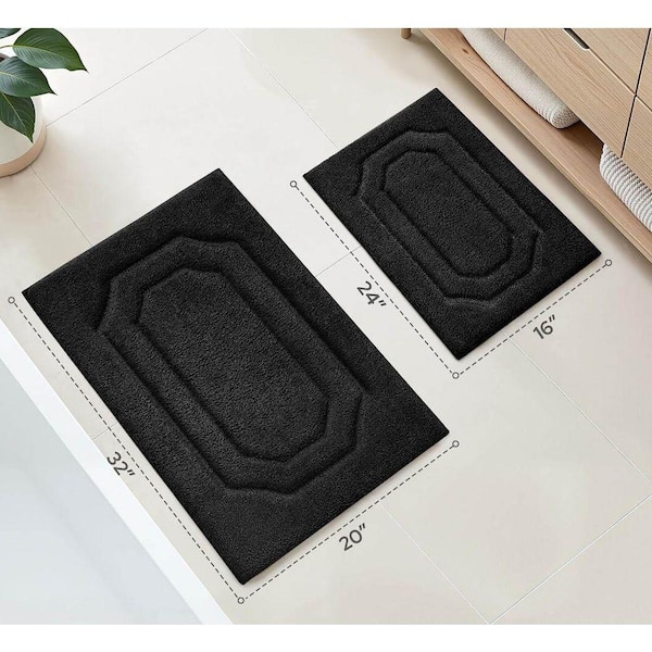 Black Extra Soft and Absorbent Microfiber Rectangle 2 Piece Bath Rug Set