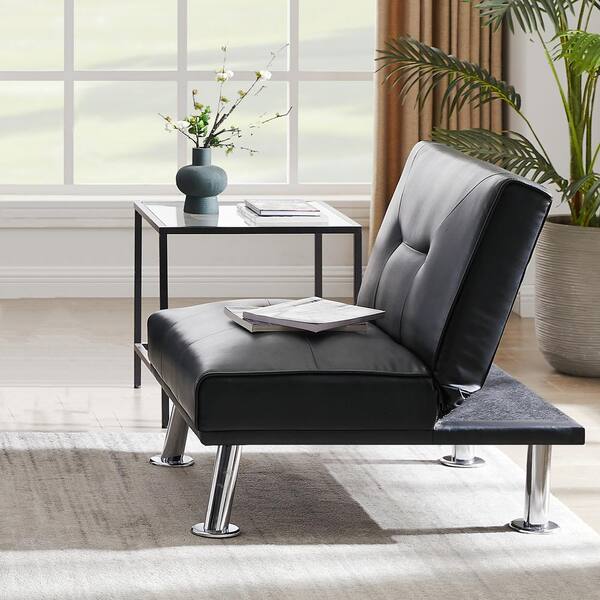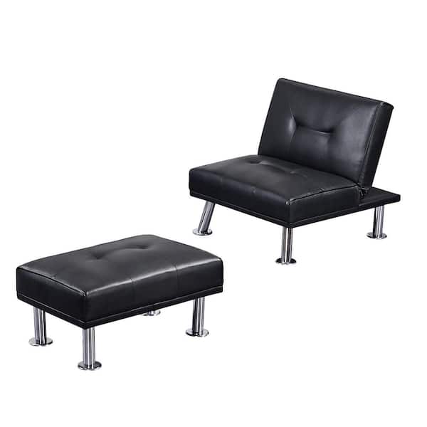 Black Faux Leather Single Sofa, Accent Chair and Ottoman Set, Convertible Folding Futon Sofa Chair for Living Room