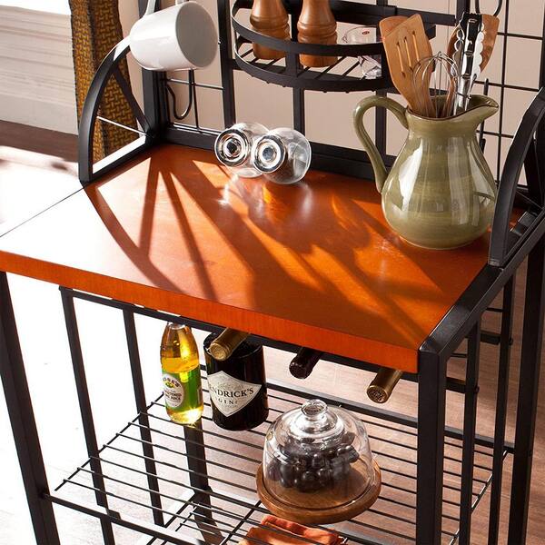 Black Kitchen Dome Bakers Rack for 5 Wine Bottles with Shelves and Hooks