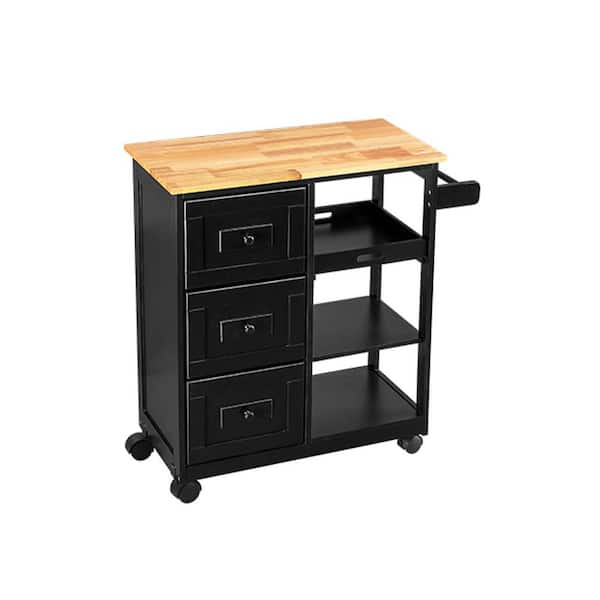 Black Kitchen Island with Open Shelves and Spice Rack