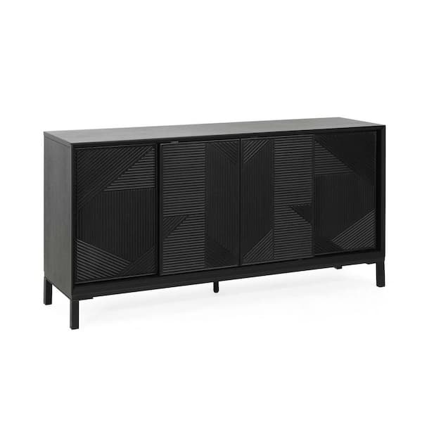 Black MDF 60 in. Modern Sideboard Buffet Cabinet Accent Storage Cabinet with Sliding Doors and Inner Two Drawers
