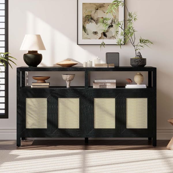 Black MDF 60 in. Vintage Sideboard Buffet Cabinet Kitchen Cabinet Console Cabinet with Open Shelf and Adjustable Shelves