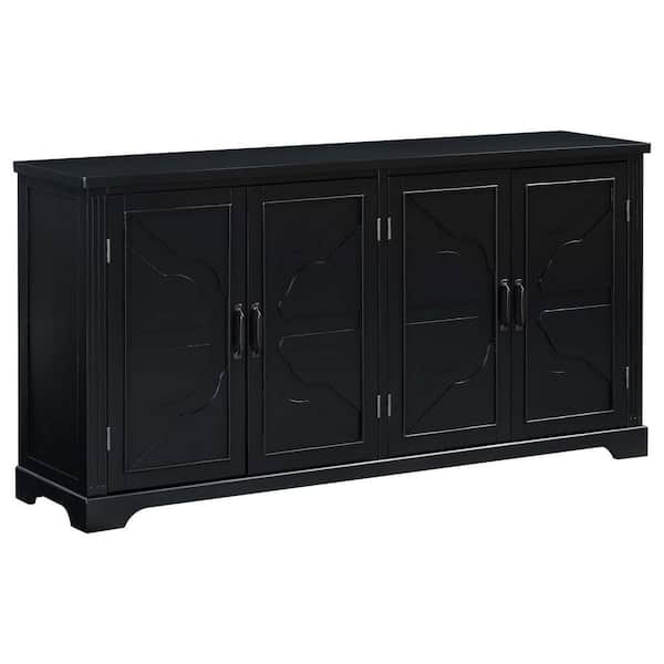 Black MDF 62.8 in. American Country Style Sideboard 4-Door Buffet Cabinet Console Cabinet with Large Storage Space