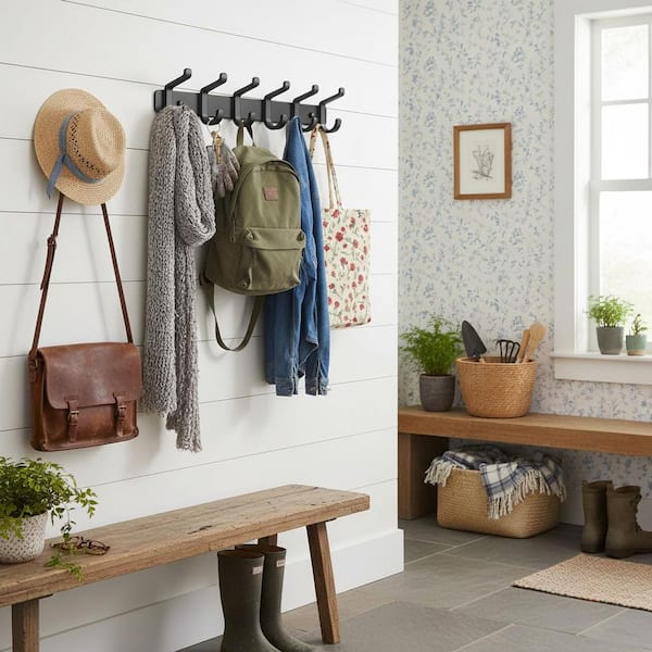 Black Metal Coat Rack Wall Mounted 1-Pack