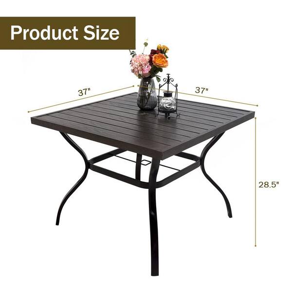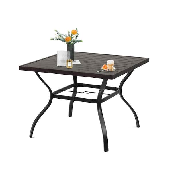 Black Metal Frame Square Patio Outdoor Dining Table, with 1.57 in. Umbrella Hole, All Weather Outdoor