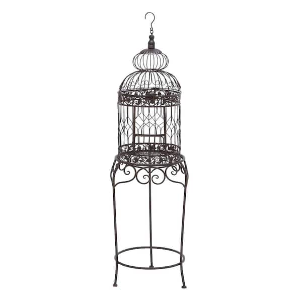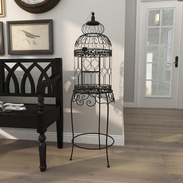 Black Metal Indoor Outdoor On Removable Stand Birdcage with Latch Lock Closure and Top Hook