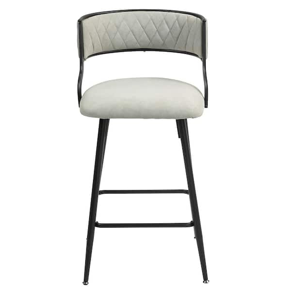 Black Metal Outdoor Bar Stool with Beige Cushions, Black Powder Coating Base and Footrest for Kitchen Island, (Set of 2)