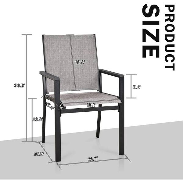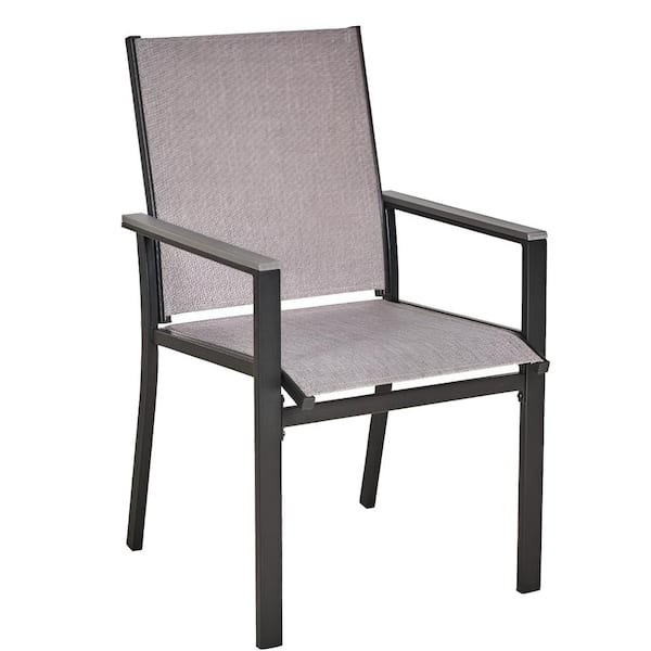 Black Metal Outdoor Chair, Textilene Patio Furniture Chair with Armrest for Lawn, Garden and Backyard, Set of 2
