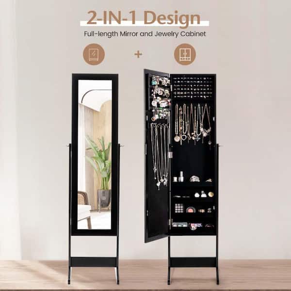 Black Mirrored Standing Jewelry Cabinet Storage Box