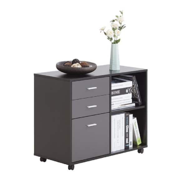 Black Mobile Lateral Filing Cabinet with Printer Stand 3-Drawer