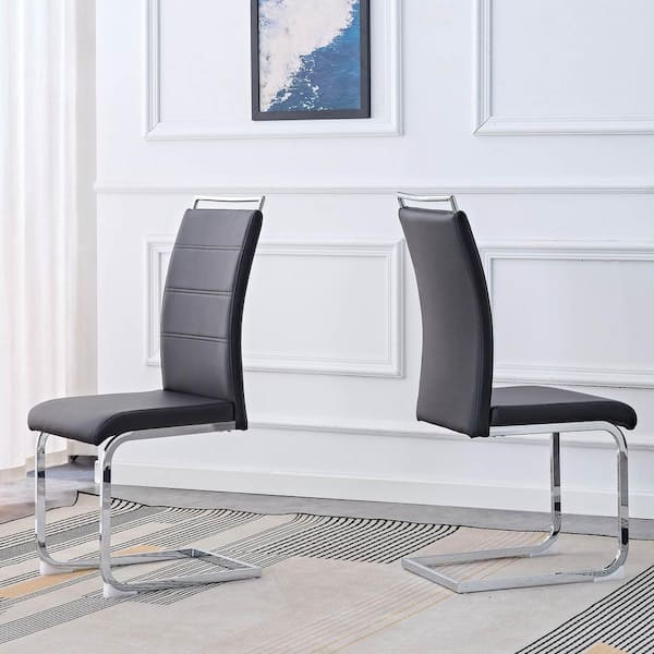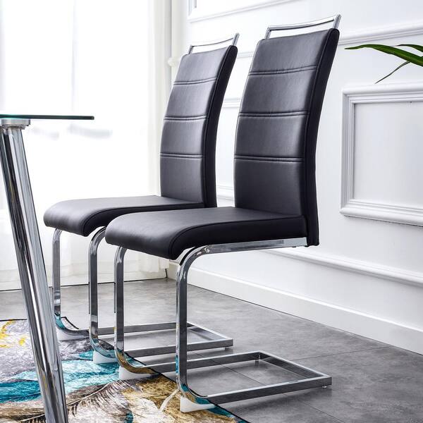 Black Modern PU Faux Leather High Back Upholstered Side Chair Transverse Stripe Backrest Design Dining Chairs Set of 2