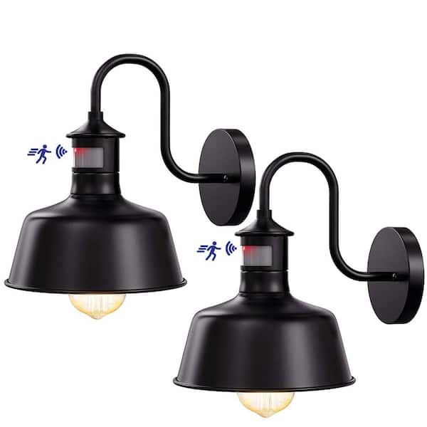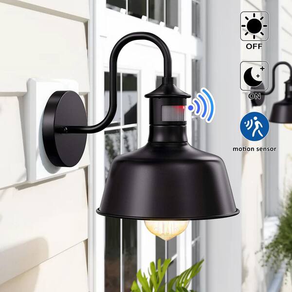 Black Motion Sensing Dusk to Dawn Hardwired Gooseneck Outdoor Barn Light with No Bulbs Included